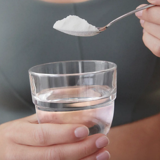 Mezclar 5g (aprox. 1½ cucharaditas) con 250ml de agua o bebida de su elección)