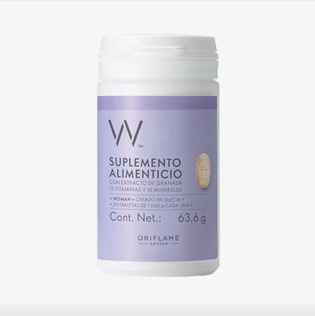 Extracto de Fruto de Granada 0.5mg, Vitamina A 700μg (88%*), Vitamina D 5μg (100%*), Vitamina E 11mg α-TE (92%*), Vitamina C 80mg (100%*), Tiamina (B1) 1.1mg (100%*), Riboflavina (B2) 1.4mg (100%*), Niacina (B3) 16mg-NE (100%*), Ácido pantoténico (B5) 6mg (100%*), Piridoxina (B6) 1.4mg (100%*), Biotina (B7) 50μg (100%*), Ácido fólico (B9) 200μg (100%*), Cobalamina (B12) 2.5μg (100%*), Calcio 175mg (22%*), Magnesio 75mg (20%*), Hierro 14mg (100%*), Zinc 7mg (70%*), Cobre 1000μg (100%*), Manganeso 2mg (100%*), Selenio 55μg (100%*), Cromo 40μg (100%*), Molibdeno 50μg (100%*), Yodo 150μg (100%*).